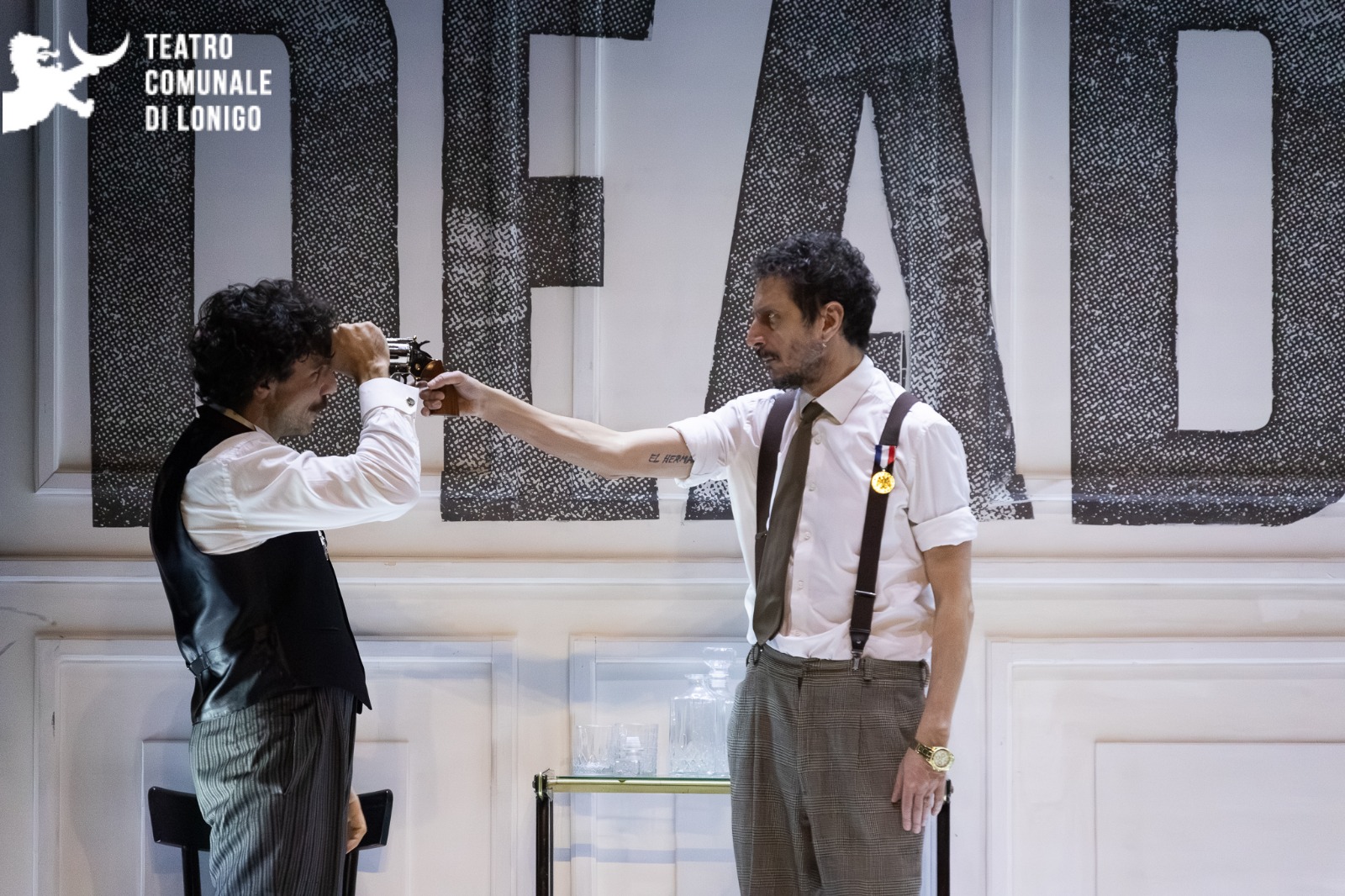 I dialoghi sono serrati, le pause cariche di sottintesi, gli scambi oscillano tra comicità e minaccia. La regia mantiene un ritmo incalzante, sorretta da un unico piano sequenza diretto verso una stanza con un tavolo, una sedia e del whisky, allo stesso tempo simbolo di lusso, di abbandono e debolezza. La scena è essenziale, claustrofobica, e lega i personaggi al pubblico, tutti costretti dentro il conflitto. Non ci sono distrazioni né pause, non c’è il tempo di ridere né di respirare: chi è il maiale? Chi lo curerà?