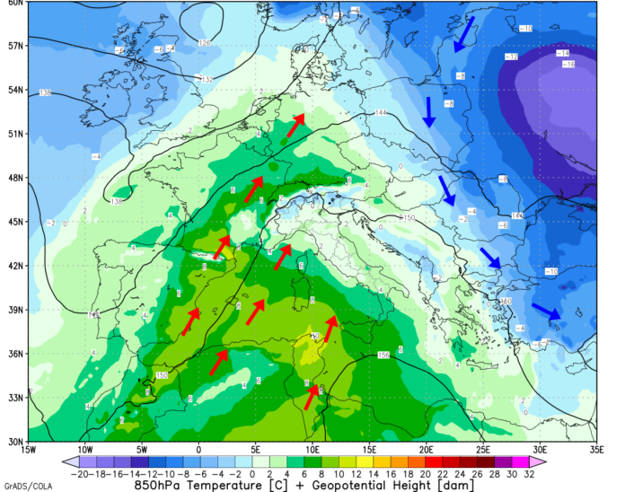 Previsioni 13-15 gennaio: cambio di circolazione e stop alle gelate