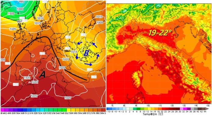L’aria fredda entrata dalla porta della bora nella giornata di domenica, dopo la rapida perturbazione, ha fatto abbassare temporaneamente le temperature su tutto il vicentino. Il vortice depressionario si sta spostando velocemente verso i Balcani lasciando spazio ad un vasto campo di alta pressione che dal Mediterraneo occidentale si protende verso l’Europa centrale. Questo determinerà tempo stabile e soleggiato sul vicentino per parecchi giorni con un aumento termico soprattutto nei valori massimi.