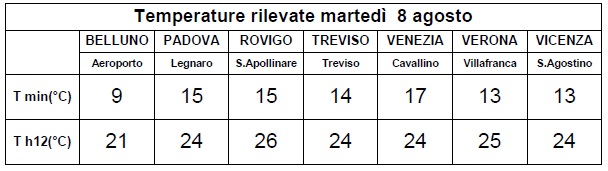 Martedì 8 agosto