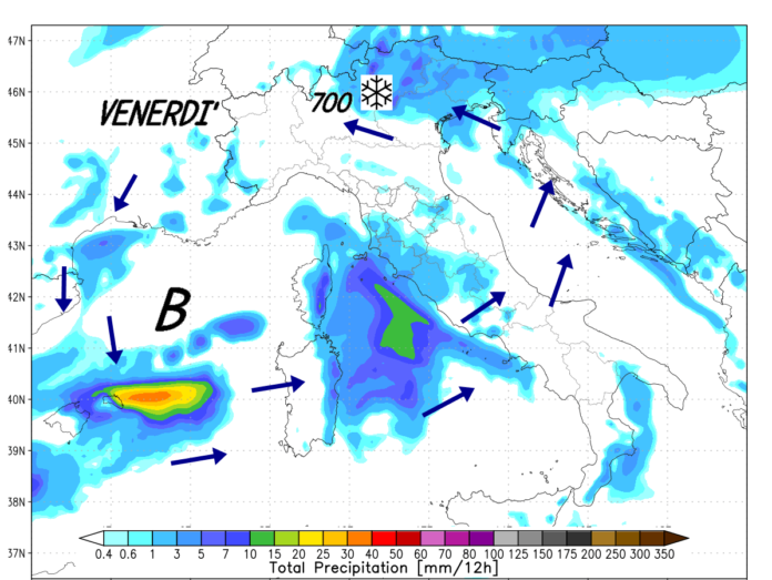 Dicembre inizia con temperature dai connotati invernali. Una bassa pressione centrata sul Mediterraneo centro/occidentale invia vari impulsi perturbati verso il nord Italia, attirando anche correnti fredde dai Balcani. Queste correnti però si faranno via via più miti nel fine settimana con quota neve che dai 700 metri si alzerà oltre i 1.000.