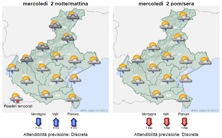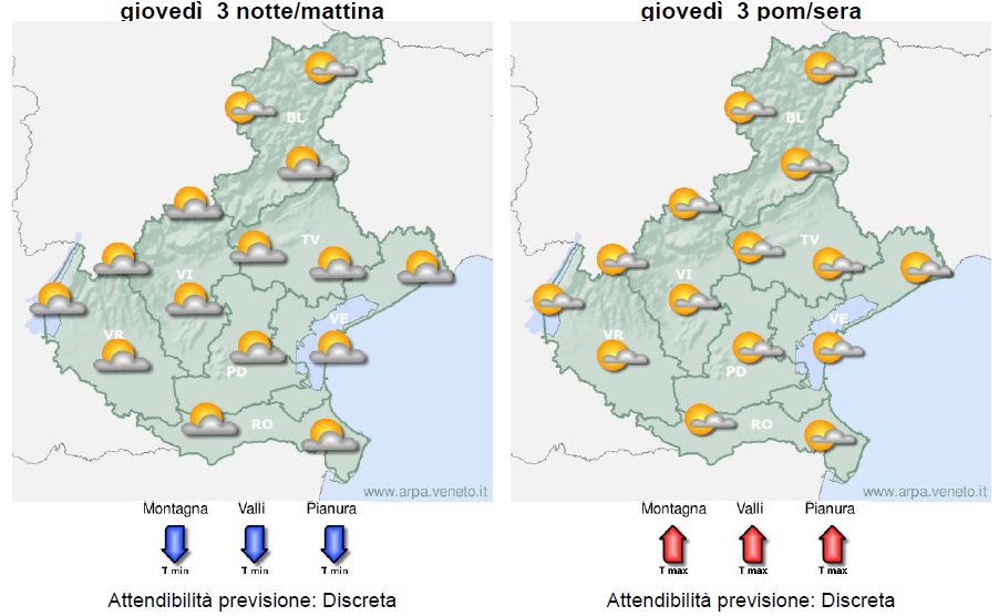 Ecco le previsioni Arpav per i prossimi giorni.