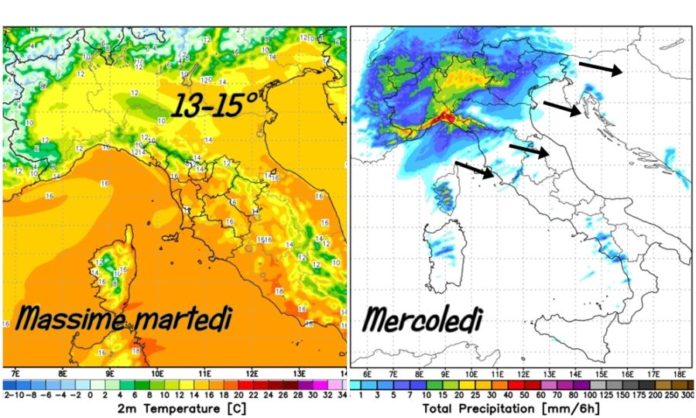 Una nuova perturbazione giungerà sulla nostra provincia a metà mattinata portando piogge diffuse in pianura e neve in montagna oltre i 1600 metri di quota. Cessazione dei fenomeni in serata. Sono attesi 25/40 millimetri di pioggia sulle pedemontane e 15/30 su medio-basso vicentino. Temperature in calo nei valori massimi.