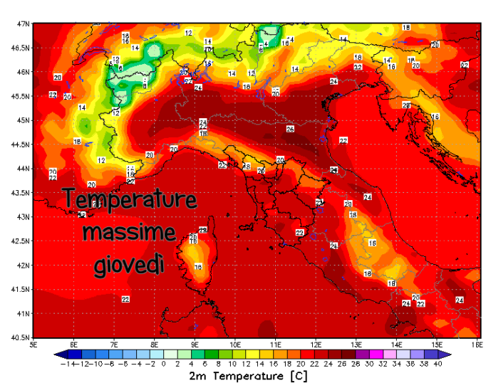 Continua questa fase di bel tempo. Merito dell’alta pressione delle Azzorre che manterrà lontano le perturbazioni dal nostro territorio. Temperature in aumento, specie in montagna dove avremo uno zero termico a 4200m, tipico del mese di luglio.