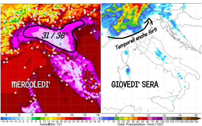 Previsioni meteo 6-8/07, nuova impennata delle temperature seguita da temporali