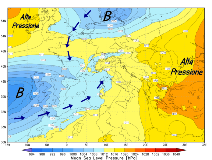Una forte alta pressione è posizionata tra Islanda e Groenlandia. Lasciando libero passaggio alle miti perturbazioni atlantiche verso il Mediterraneo. Contemporaneamente un altro “corridoio” di correnti fredde ed instabili si muove dalla Scandinavia verso le Alpi. Questo determinerà ancora un tempo molto movimentato sul Vicentino con altri impulsi perturbati e brevi schiarite.