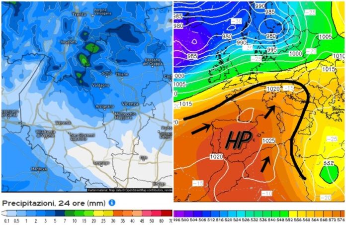 Una breve parentesi di perturbazione potrebbe portare deboli piogge oggi sul territorio Vicentino, in particolare sui rilievi. Già in serata la schiarita, poi si attende tempo sereno nella prima parte della seconda settimana di marzo.
