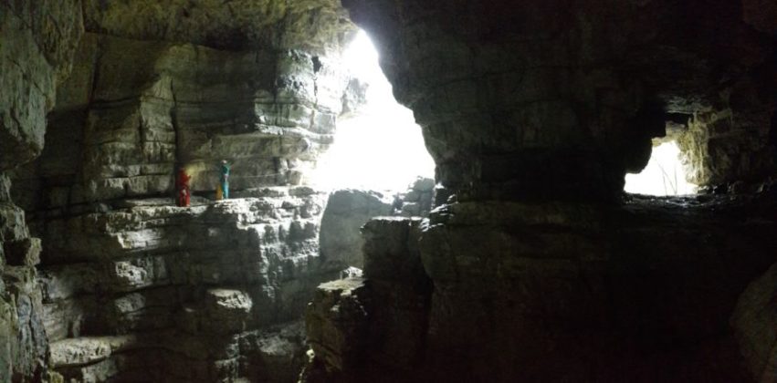 In circa 20 minuti si raggiunge il cartello informativo della Leute Kubala dal quale scende un ripido sentiero verso il sottostante canyon. Lo si segue fino a notare ad una svolta una piccola grottina e delle staffe in ferro che aiutano a scendere lungo la paretina rocciosa. Attenzione: in questo tratto bisogna porre molta attenzione soprattutto in caso di terreno bagnato perché si rischia di precipitare nella forra sottostante! Scesi i pochi metri con le staffe si segue la traccia di sentiero che porta all’ingresso della grotta. Entrati è subito meraviglia.