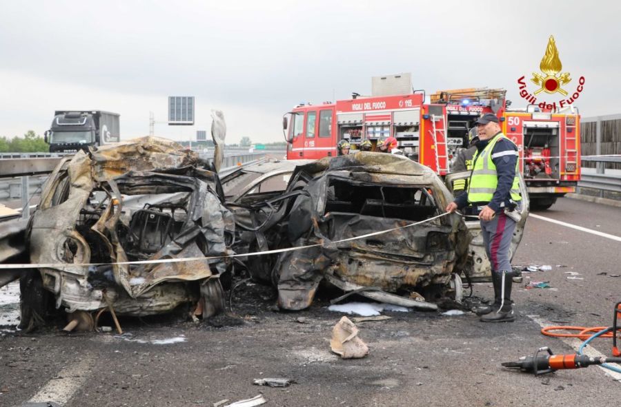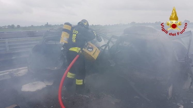 Tre vetture hanno preso fuoco, facendo altrettante vittime. Il conducente di una delle auto coinvolte è riuscito a mettersi in salvo, mente un secondo automobilista e le due persone a bordo della terza auto coinvolta hanno trovato un’orribile morte: i pompieri di Lonigo e Vicenza hanno spento il rogo delle tre vetture, niente da fare purtroppo per gli occupanti. Soccorso e portato in ospedale dal Suem 118 l’automobilista che era riuscito a scendere dall’auto in fiamme. Illeso invece il guidatore di un’altra auto, il conducente di un furgone cassonato e l’autista del camion.
