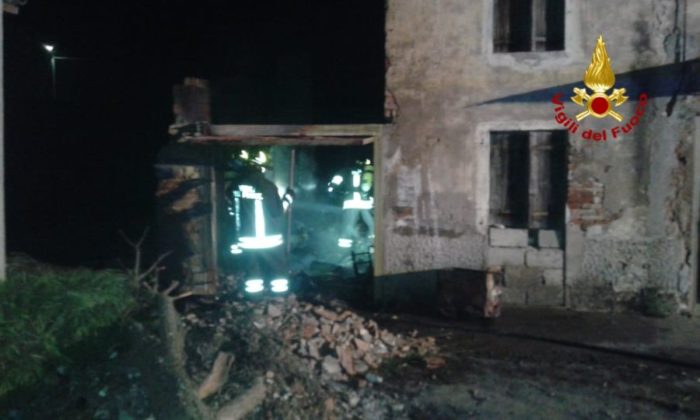 Intervento d’urgenza ieri sera per i vigili del fuoco di Lonigo e Vicenza, giunti in località Caselle di Noventa Vicentina per l’incendio di una casa ritenuta disabitata, in realtà più che probabile dimora di persone senzatetto. All’interno dei locali dell’edificio, in condizioni strutturali critiche oltre che pessime dal punto di vista dell’igiene, si era sviluppato un incendio, presumibilmente nella prima serata di domenica. I pompieri, giunti sul posto intorno alle 21.45, si sono prodigati per spegnere le fiamme scaturite da cumuli di masserizie, principalmente indumenti e stracci e rifiuti ammassate all’interno del garage. Fuoco che ha attecchito anche a delle ramaglie appena fuori l’abitazione fatiscente.