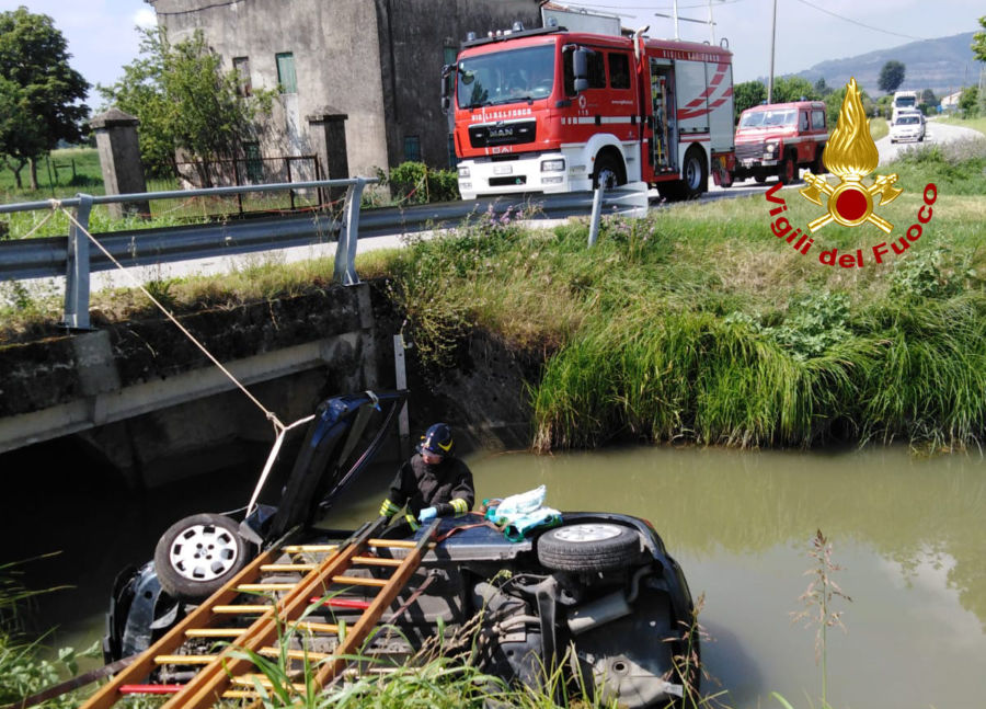 Alle 10:45 circa di giovedì, i vigili del fuoco sono intervenuti in località Belvedere lungo la SP 8 a Sossano per un’auto finita rovesciata su un fianco all’interno di un canale con oltre mezzo metro d’acqua: ferita un’anziana.