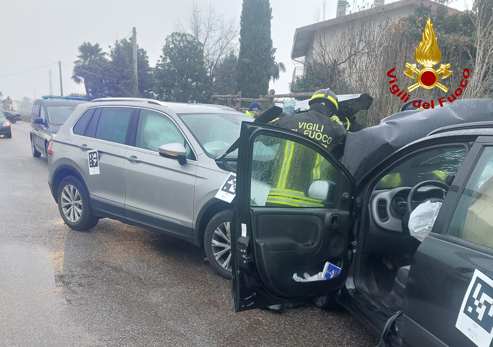 La squadra dei vigili del fuoco arrivata da Lonigo, ha messo in sicurezza i mezzi ed estratto da una Fiat Panda e da una Volkswagen Tiguan le due conducenti, rimaste entrambe incastrate al posto guida. Ferito anche il passeggero della Panda.