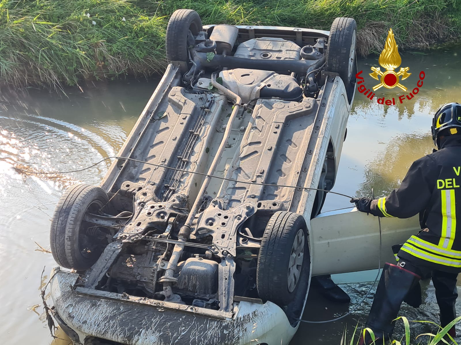 Auto esce di strada e si ribalta nel canale. Salva ma ferita l’unica occupante