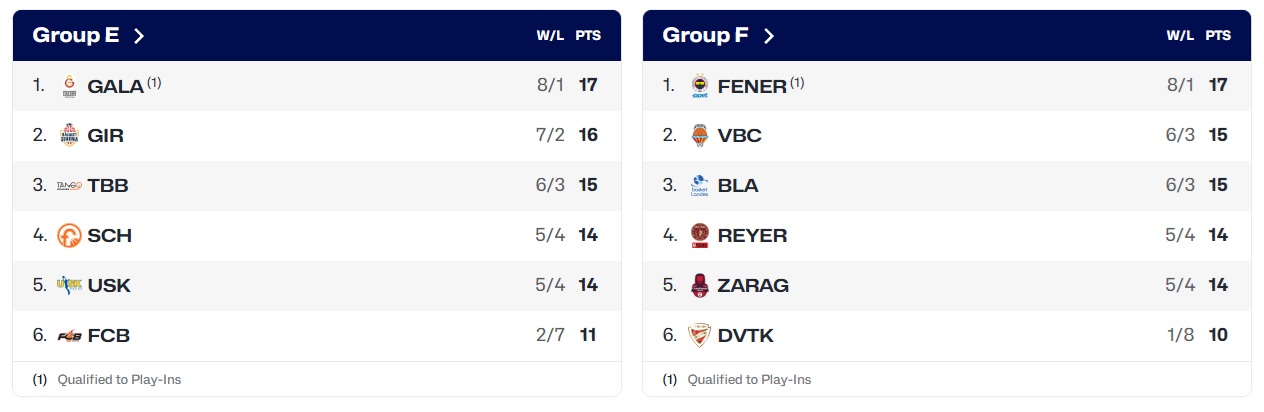 Le Orange condotte dal tecnico spagnolo Victor Lapeña scivolano in classifica al 4° posto, in pratica l’ultimo ultimo utile per aspirare a proseguire la corsa dalla seconda alle terza fase, ma ora da condividere in coabitazione con le campionesse continentali in carica dell’Usk Praga. Le paladine della Repubblica Ceca sono risorte dopo il ko del PalaRomare di Schio, sotterrando per 98-55 Flammes Carolo, francesi oramai cenerentole del girone E e tagliate fuori dai giochi. Nel big match che interessa Schio, il Galatasaray sbanca Girona e mette la sua ipoteca sul 1° posto. Ko anche l’altra squadra italiana (nel gruppo F) pure in corsa nel massimo torneo per club del basket femminile continentale: Reyer Venezia ko 81-73 a Valencia e nella medesima situazione delle rivali altovicentine, con 14 punti e un cammino di 5 vittorie e 4 sconfitte. Ancora tre le partite in calendario (la prossima con Girona, poi Praga in trasferta e il ritorno con Bourges a chiudere), con i primi due posti con altrettanti pass diretti ai limiti del miraggio, e l’accesso dalla porta di servizio dei play-in obiettivo ancora alla portato ma tutto da meritare.