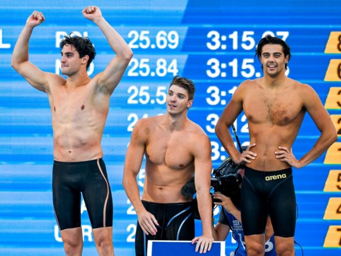“Ci tenevamo a vincere e l’abbiamo portata a casa abbastanza facilmente. La mia frazione è stata abbastanza buona, considerando il periodo – conclude il 23enne di Schio, tesserato per Fiamme Oro e Leosport, oro nei 50 farfalla – Nei prossimi anni daremo del filo da torcere al resto del mondo: stiamo lavorando bene”.