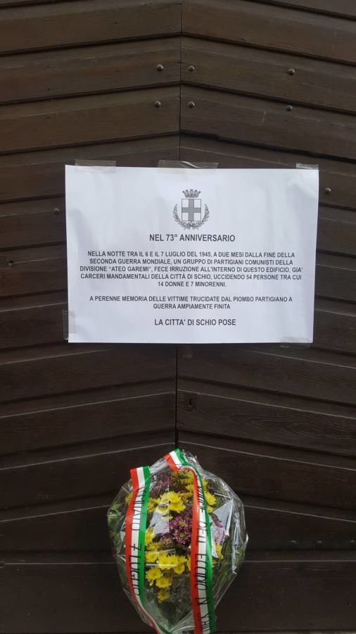 Da un lato, infatti, il presidio annunciato dal gruppo Schio Antifascista (che ruota attorno al centro sociale Arcadia), dall’altra i gruppi di destra del “Comitato 7 luglio” che rivendicano il diritto di ricordare i bersagli umani della sanguinosa rappresaglia avvenuta a tre mesi dalla conclusione del secondo conflitto mondiale, in un clima che evidentemente a Schio non era pacificato. Poche decine di persone sia da una parte che dall’altra, ieri sera a margine della celebrazione religiosa. In mezzo, tanta ideologia e il dispiegamento preventivo delle forze dell’ordine, a scoraggiare l’accendersi degli animi ideologicamente più agitati. Il “confronto” a distanza si è manifestato dopo la Santa Messa, quando – come ogni anno – i militanti del Comitato hanno deposto fiori e un cartello in via Baratto, dove sorgevano le carceri di Schio, teatro dell’Eccidio. Dal fronte antifascista sono partite grida e slogan.