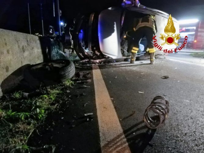 I vigili del fuoco sono intervenuti insieme al Suem 118 intorno alle 2.20 nel tratto ricadente sotto il territorio comunale di Schio: la donna ha perso il controllo dell’auto, che si è schiantata finendo rovesciata su un lato.
