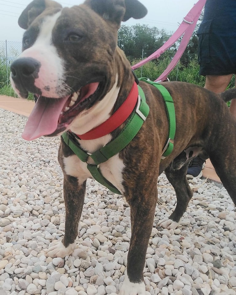 “E’ un cane giovane e vivace, affettuoso e giocherellone, ma si vede che è triste e non capisce perché all’improvviso si è ritrovato da solo e viene rinchiuso” spiega Federica De Pretto, presidente Enpa Thiene Schio, che sta disperatamente cercando di trovare una famiglia giusta per il giovane incrocio di Amstaff, di taglia contenuta.