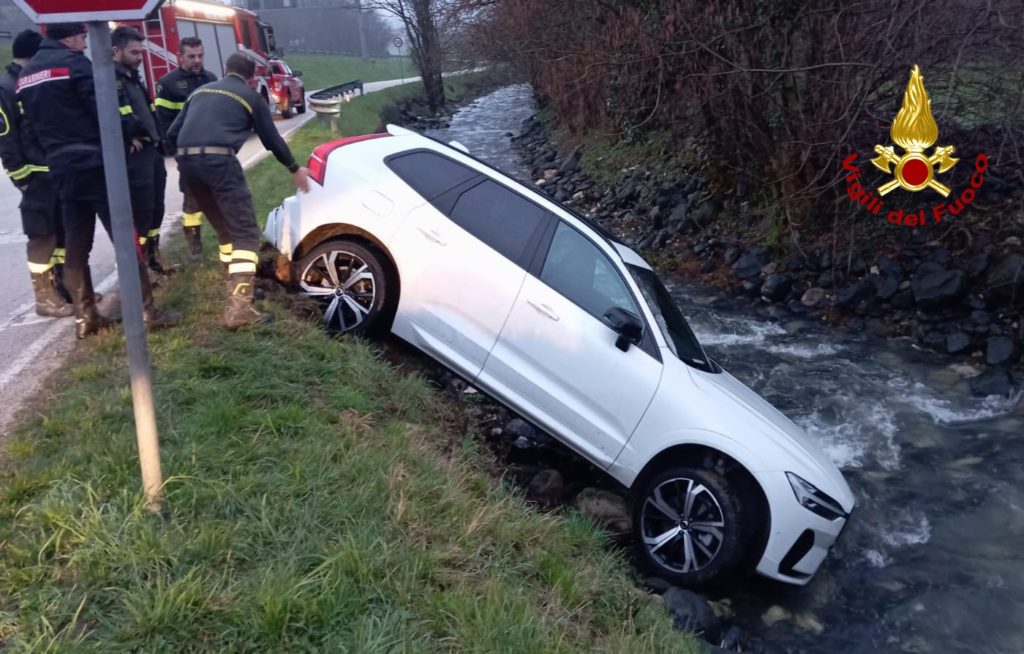 La possibile missione di salvataggio di persone si è tradotta infine e per fortuna “solo” in operazione di recupero di un veicolo finito fuori strada ieri mattina in territorio di Schio, dove era stata segnalata una Volvo XC 60 bianca in un torrente. Il suv finito in un corso d’acqua attiguo alla strada che porta a Monte di Magrè, lungo la via Pianezza tra le colline e le contrade, è stato notato da qualche automobilista di passaggio di prima mattina, che ha avvisato il 118.