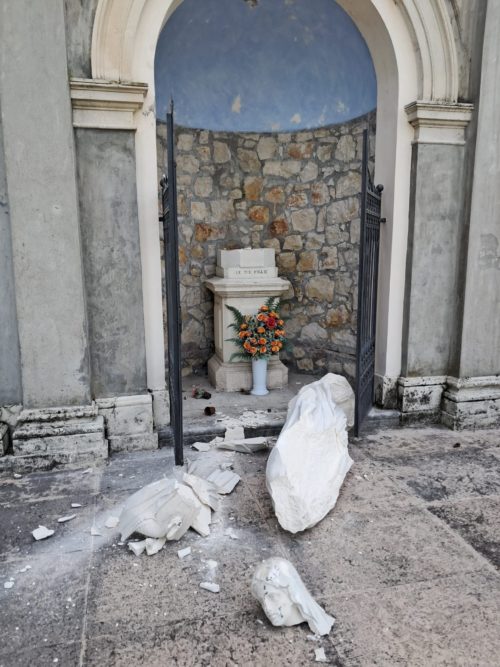 Distrutta da vandali la statua mariana a Santa Libera. Marsetti: “Troveremo chi è stato”
