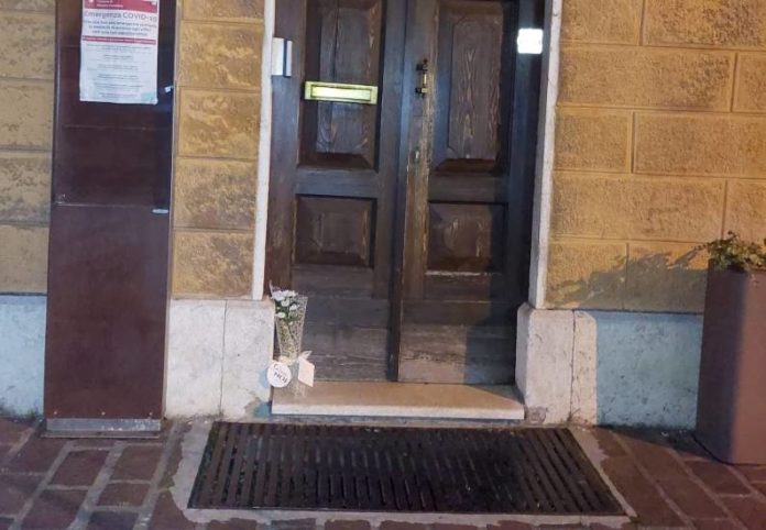 I primi dipendenti comunali arrivati in municipio a Marano Vicentino questa mattina hanno trovato appoggiato davanti alla porta d’entrata un mazzo di fiori e un biglietto, che inneggiava alla protesta No Green Pass.