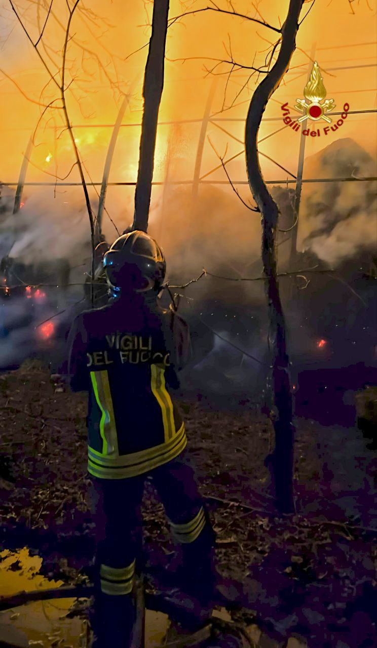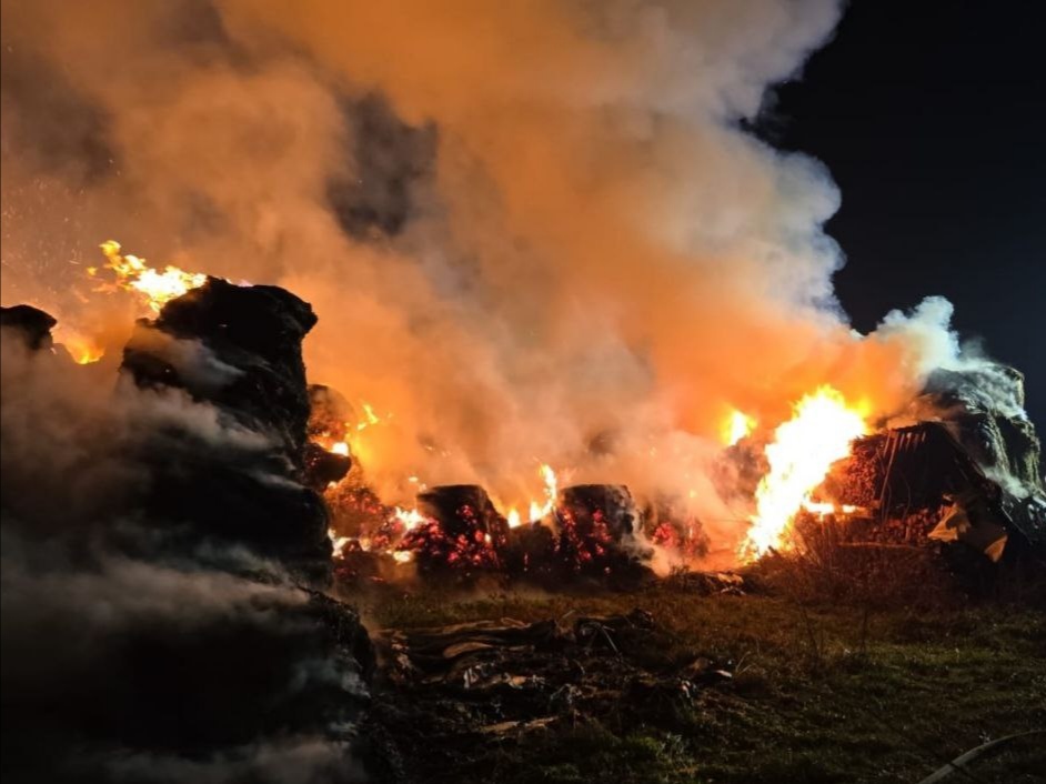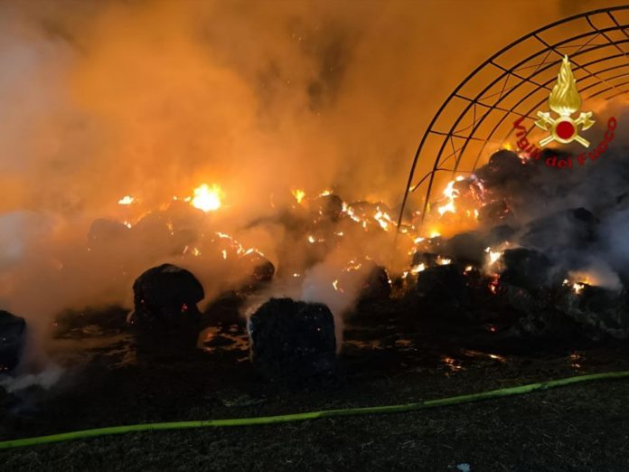 Deposito di 500 rotoballe distrutto da un furioso incendio: