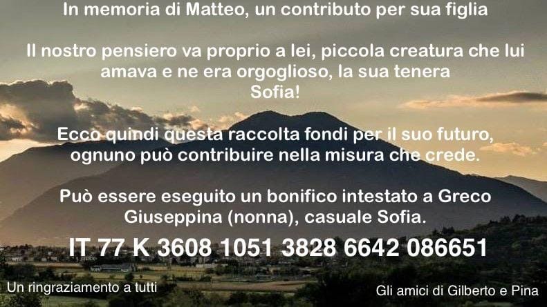 Intanto la data del funerale è stata fissata per domani pomeriggio. Il feretro giungerà nella chiesa di Santo Stefano, alle pendici del Monte Summano, alle 15.30. I genitori di Matteo, Giuseppina e Gilberto – coppia di commercianti conosciuti nell’ambito della ristorazione in Altovicentino – insieme al fratello Marco e alla piccola Sofia, attorniati dall’affetto degli altri amici e parenti più cari, saluteranno quindi il 38enne con la funzione religiosa pubblica, per poi attendere la cremazione della salma e riporre l’urna nel cimitero locale. Per volere della famiglia, a chi vorrà liberamente dimostrare la partecipazione al lutto attraverso un’offerta, si chiede di inviarla alla Fondazione Città della Speranza, a favore delle cure dei bambini malati oncologiche e a favore della ricerca.