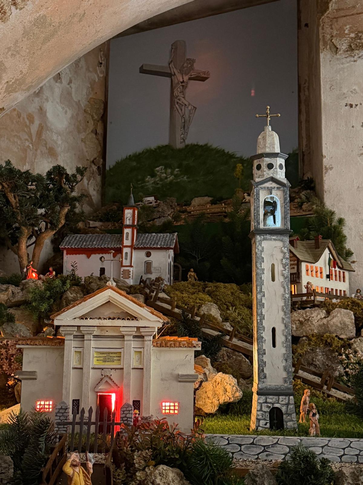 Il presepe nasce nell’estate del 1989, quando un gruppo di amici, all’uscita dal Santuario dell’Angelo, decide di costruire una piccola capanna con la Natività. Per 27 anni quella capanna rimane all’inizio del sentiero dei Girolimini, in Birreria Vecchia: un luogo che per tutti è semplicemente “la Crosara”. È lì che le famiglie delle vie vicine, anno dopo anno, hanno custodito e alimentato la tradizione, portando legna, luci, idee, e soprattutto presenza. Col tempo il presepe cresce, si arricchisce, si fa più complesso. Ma per i piovenesi resta sempre “il nostro Presepe della Crosara”, un simbolo di appartenenza e memoria. Nel 2016 viene trasferito nel prato dietro la chiesetta dell’Ospizio, una cornice suggestiva che conquista i visitatori. Poi, quando non è più possibile allestirlo lì, l’Amministrazione comunale mette a disposizione le antiche carceri del municipio, trasformandole in una casa definitiva per questa tradizione.
