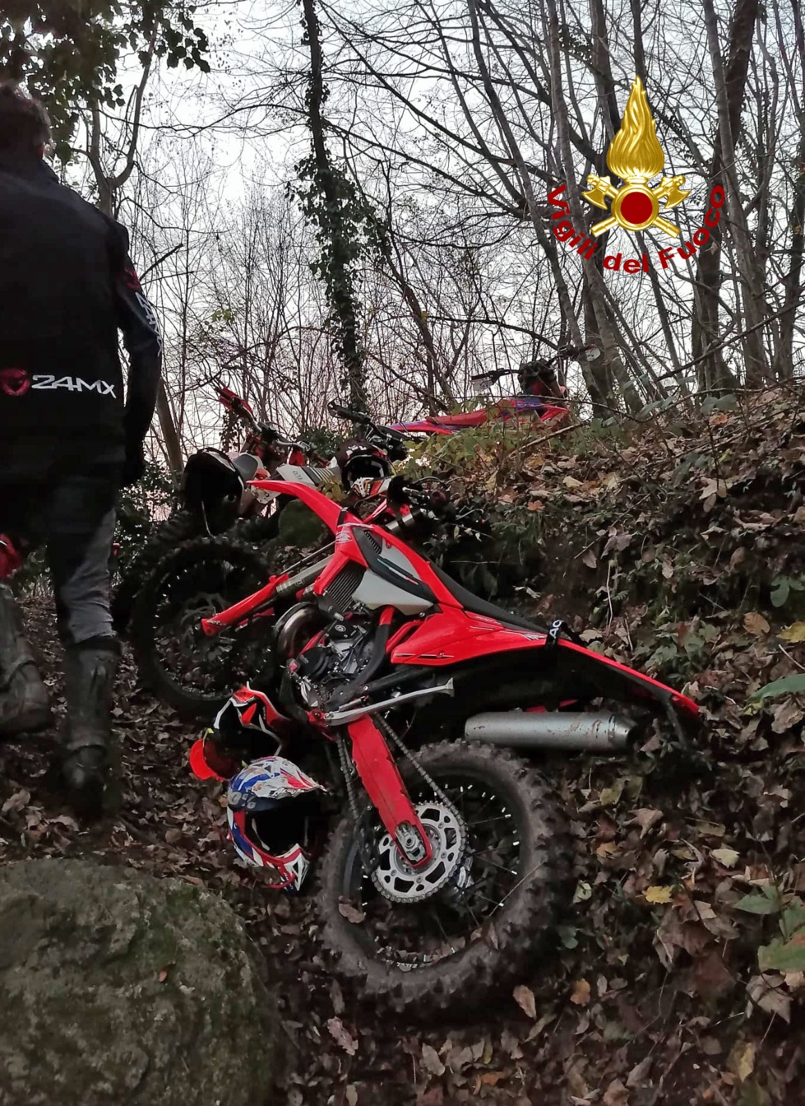 Precipita con la moto da cross per 20 metri in un bosco: ferito un giovane – VIDEO