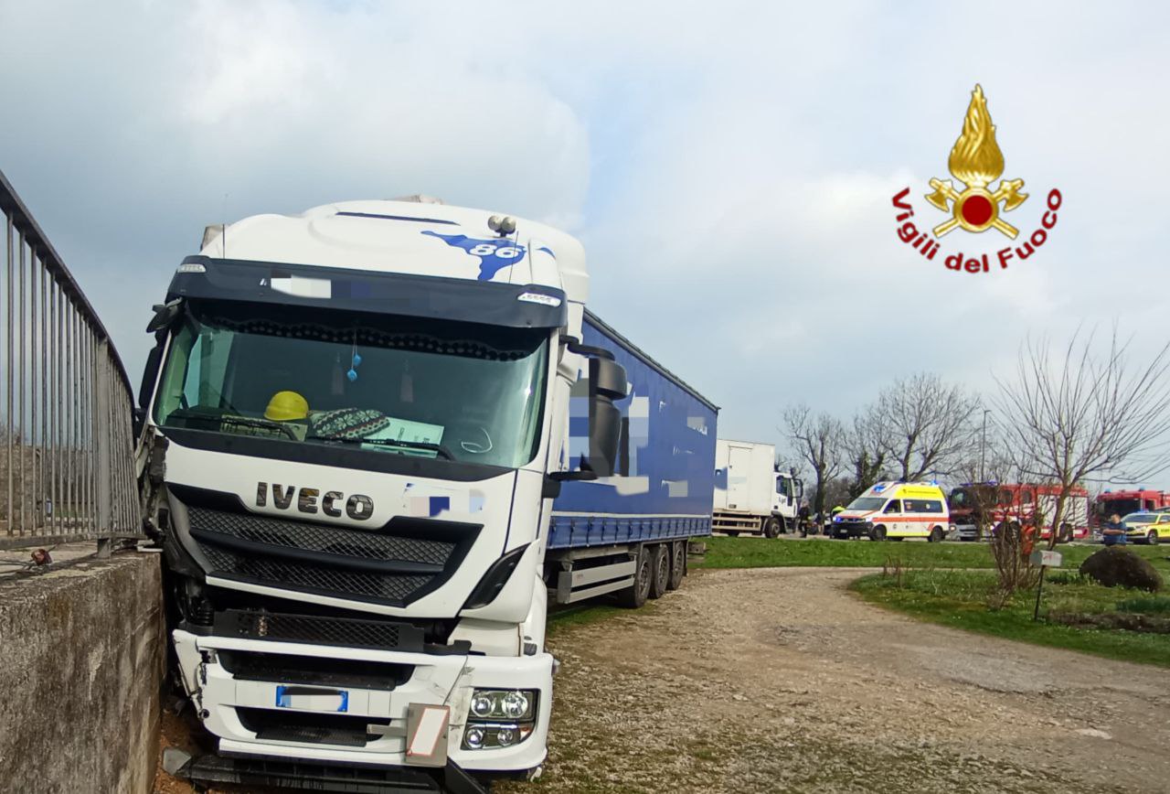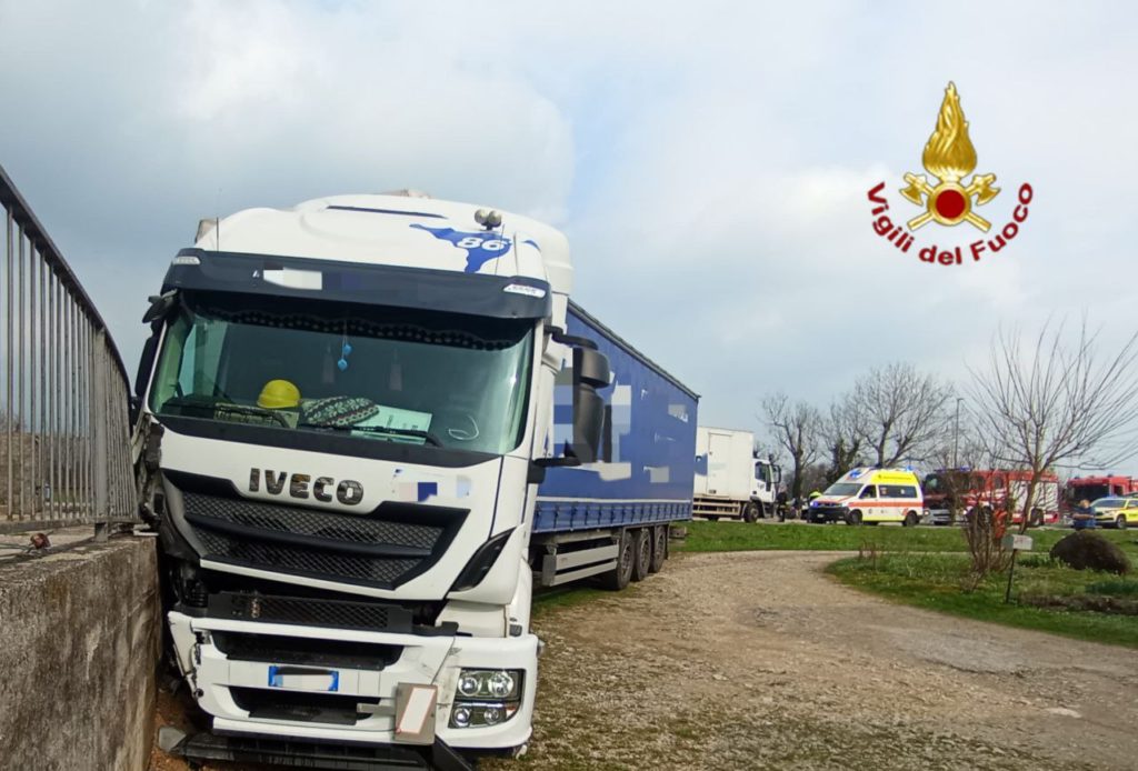 L’incidente è avvenuto nel primo pomeriggio poche centinaia di metri più a Nord dell’ospedale Alto Vicentino. I due mezzi, per cause ancora in accertamento, si sono scontrati frontalmente e l’autoarticolato è finito nel campio adiacente alla strada.