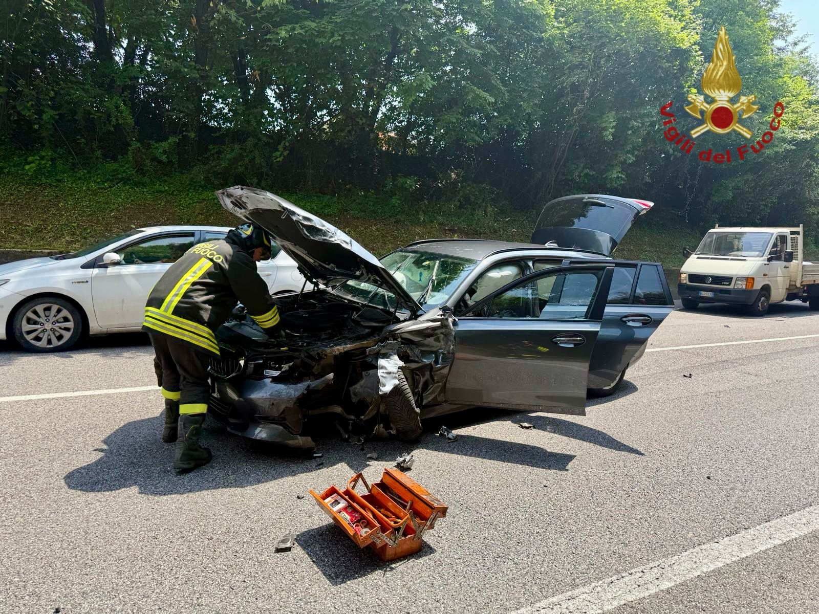 Ancora in via di definizione da parte della polizia locale Alto Vicentino le cause dell’incidente, un semifrontale, che ha coinvolto un’utilitaria e una grande berlina: probabile una distrazione al volante che potrebbe aver provocato un’invasione di corsia.
