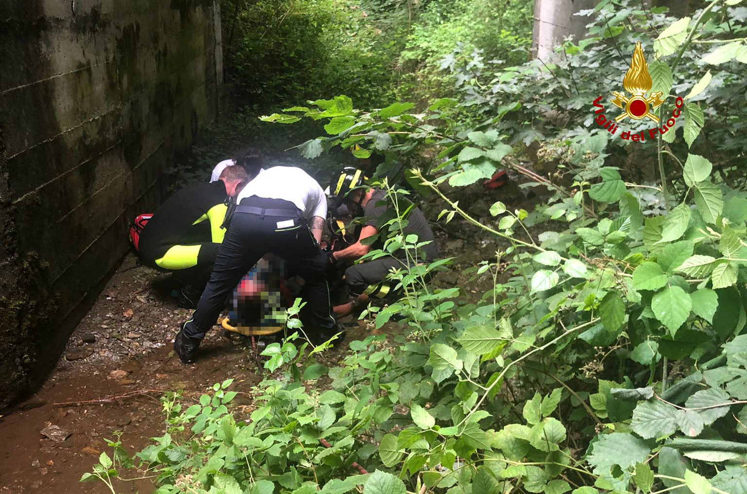 Cade dalla sponda di corso d’acqua e precipita per 5 metri: soccorso in elicottero