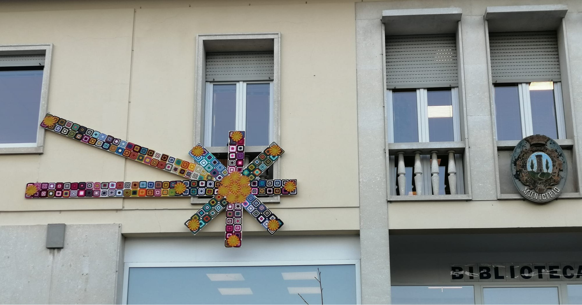 Intanto, un’altra stella cometa, più piccola e realizzata all’uncinetto, brilla dalle finestre del Municipio: l’hanno realizzata due amiche, Marlis e Paola, dalle mani d’oro. Un’idea che volentieri l’amministrazione comunale ha supportato, ed ecco che con oltre 200 centrini e il supporto di un terzo volontario, Loris, che l’ha messa al suo posto, la stella colorata brilla nella piazza principale del paese.