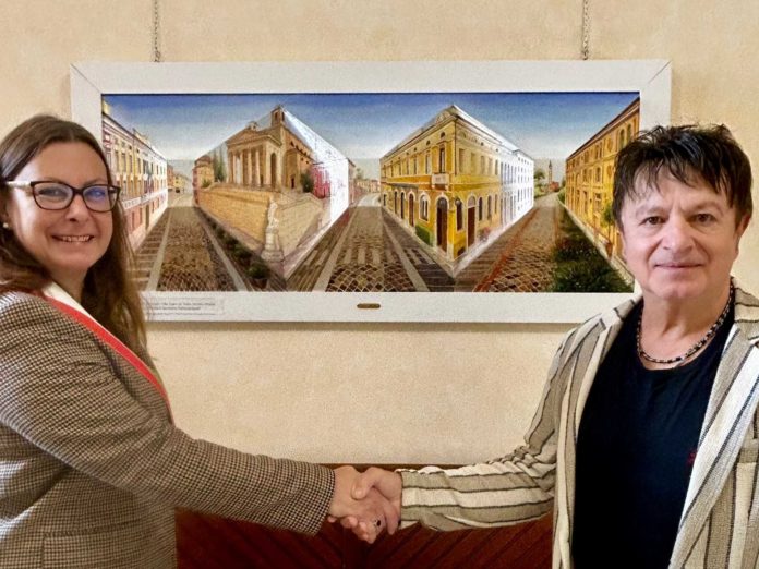Da ogni angolazione, lo sguardo è catturato dai palazzi simbolo del centro storico di Schio, riprodotti con meticolosa attenzione ai dettagli e alla luce. È un dialogo tra realtà e percezione, tra architettura e arte, che trasforma un angolo del Municipio in uno spazio di bellezza e riflessione: “È un dono prezioso, non solo per il suo valore artistico ma per il significato che porta con sé – ha dichiarato la sindaca Cristina Marigo – quest’opera rappresenta un omaggio sentito alla nostra città, ai suoi luoghi e alla sua identità. Accoglie chi entra in municipio con la stessa apertura e vitalità che contraddistinguono la nostra comunità. Ringrazio di cuore l’artista per aver scelto di condividere con tutti i cittadini il suo sguardo su Schio”.