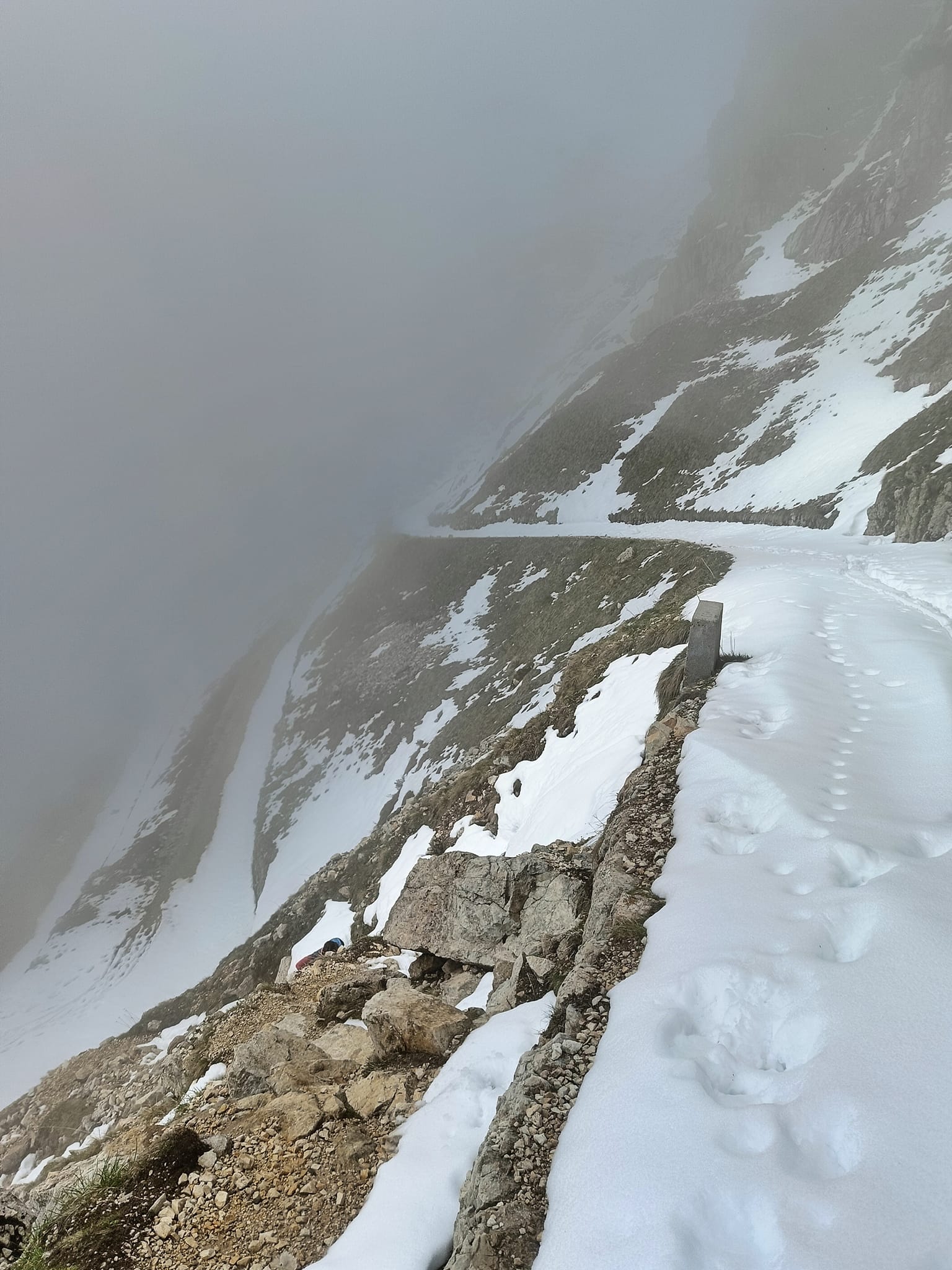 La situazione cambia radicalmente passata la località “Porte del Pasubio” dopo il Rifugio (che si trova a 1930 metri), dove il suolo risulta totalmente imbiancato con accumuli anche considerevoli laddove era ancora presente neve vecchia.