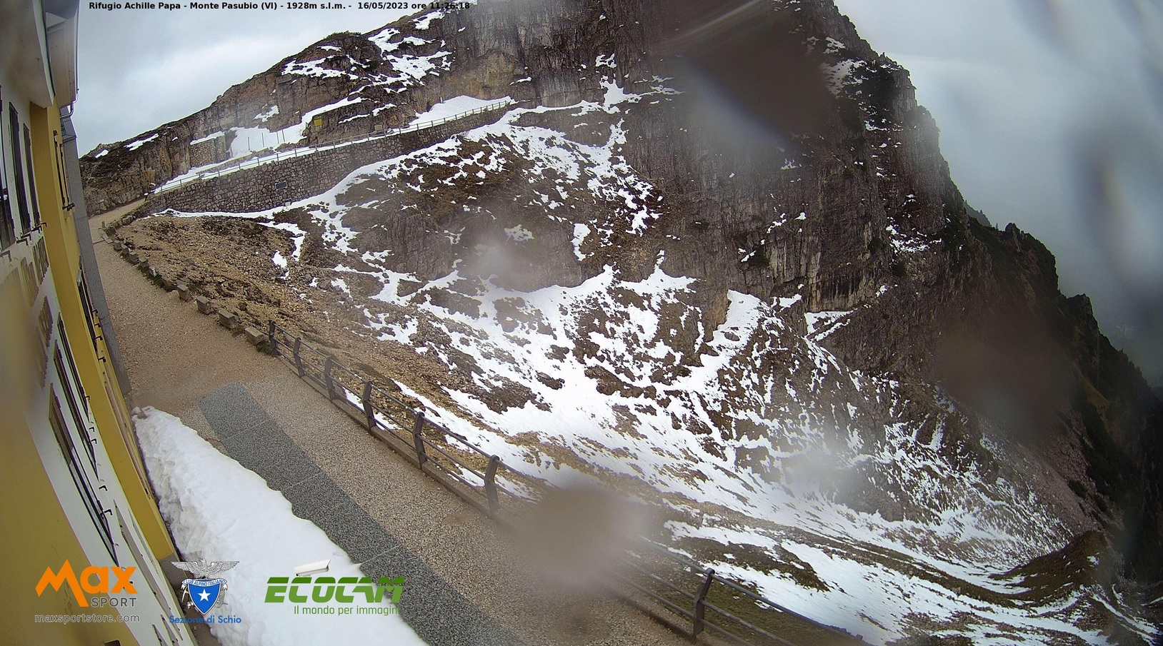 Il Monte Pasubio è tornato ad essere coperto da una coltre di neve. A due settimane dalla prevista apertura estiva del Rifugio Achille Papa (prevista per il 2 giugno), la neve sul versante sud è presente a tratti da quota 1800 metri.