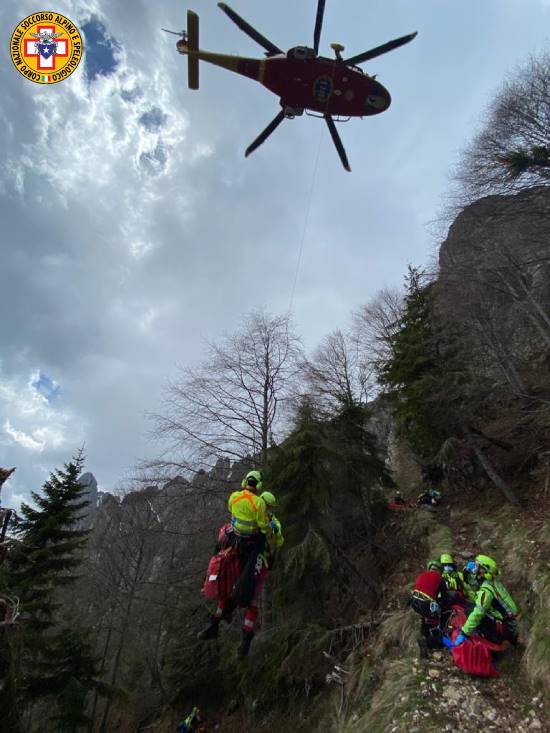 Prestate le prime cure all’uomo, che era cosciente, ma aveva riportato un probabile politrauma e molte escoriazioni, i soccorritori lo hanno imbarellato e predisposto per il recupero con l’eliambulanza, arrivata non appena si è aperto un varco. Sollevato con il verricello, l’infortunato è stato imbarcato e trasportato all’ospedale di Vicenza in codice giallo di media gravità. I soccorritori, dieci in tutto, sono rientrati assieme alla compagna.