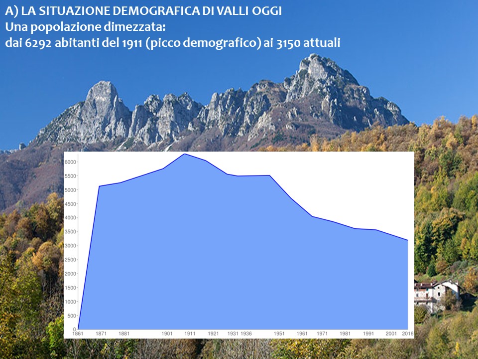 E’ da questa premessa che si è mossa la volontà di un questionario ai cittadini, prima di tutto per raccogliere informazioni utili su cui improntare le future politiche locali sul tema dell’emigrazione e dell’immigrazione da e per Valli. Valide come raffronto per altri paesi analoghi che da un secolo ormai fanno i conti con lo spopolamento progressivo di centri abitati, frazioni, contrade e valli.