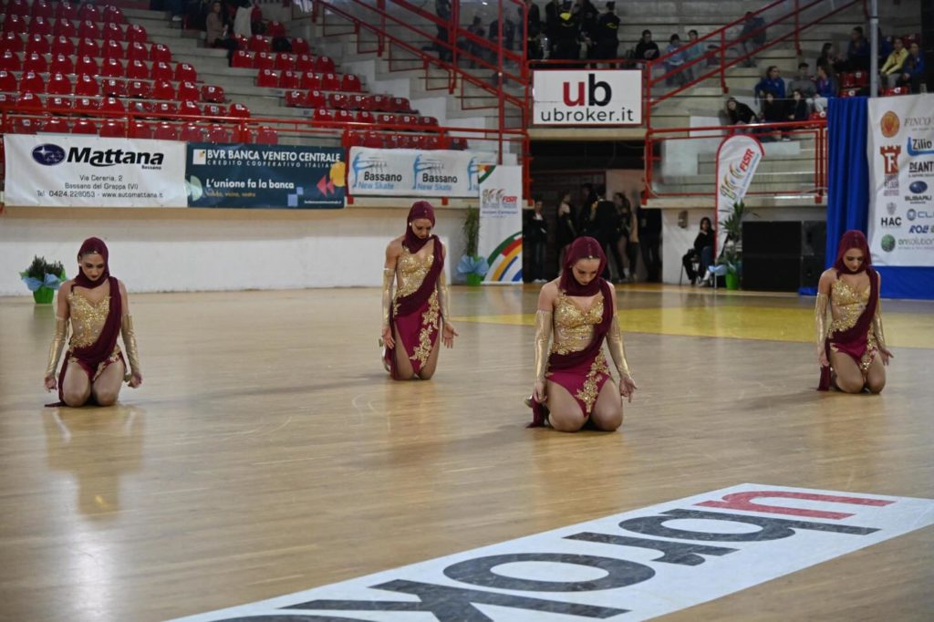 Erano otto le categorie in competizione. I podii per il Veneto hanno visto i team vicentini mettere a segno buoni risultati. Il campionato si è aperto venerdì con la gara dei Quartetti Divisione Nazionale (oro per Calipso, Skating Club Zanè con il disco di gara “Nel cuore dell’oceano”; argento per Kronos, Pattinaggio Castelgomberto, con “Una notte all’opera”) e a seguire con i Piccoli Gruppi Divisione Nazionale (campione regionale anche qui il piccolo gruppo Calipso dello Skating Club Zanè con “Taken”).