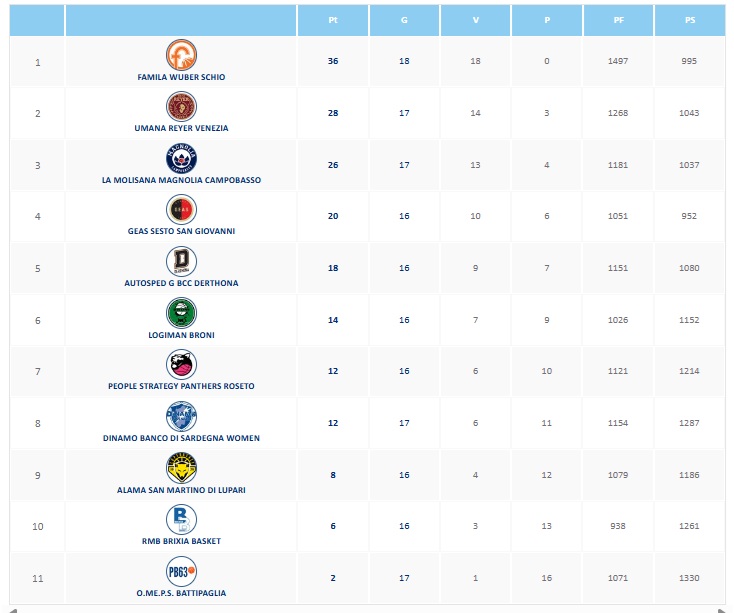 La doppia trasferta attaccata e ravvicinata in Sardegna e Campania ha portato prima il 17° e poi il 18° successo in Italia per il Famila, ancora imbattuto tra campionato, Coppa Italia e Supercoppa. Inflitti 88 punti al Banco di Sardegna Sassari (a 73) e poi 89 al Battipaglia (a 73 anche qui come passivo), offrendo punteggi finali quasi identici per il margine di +16 e +15 ma con dinamiche del tutto diverse nelle due partite. Se con Bss, 7° in classifica di A1 con Roseto, era lecito attendersi una discreta fatica a prevalere, del tutto imprevista la dose di impegno extra contro la cenerentola Battipaglia, che ha sognato a lungo un clamoroso testacoda da rifilare alla leader.