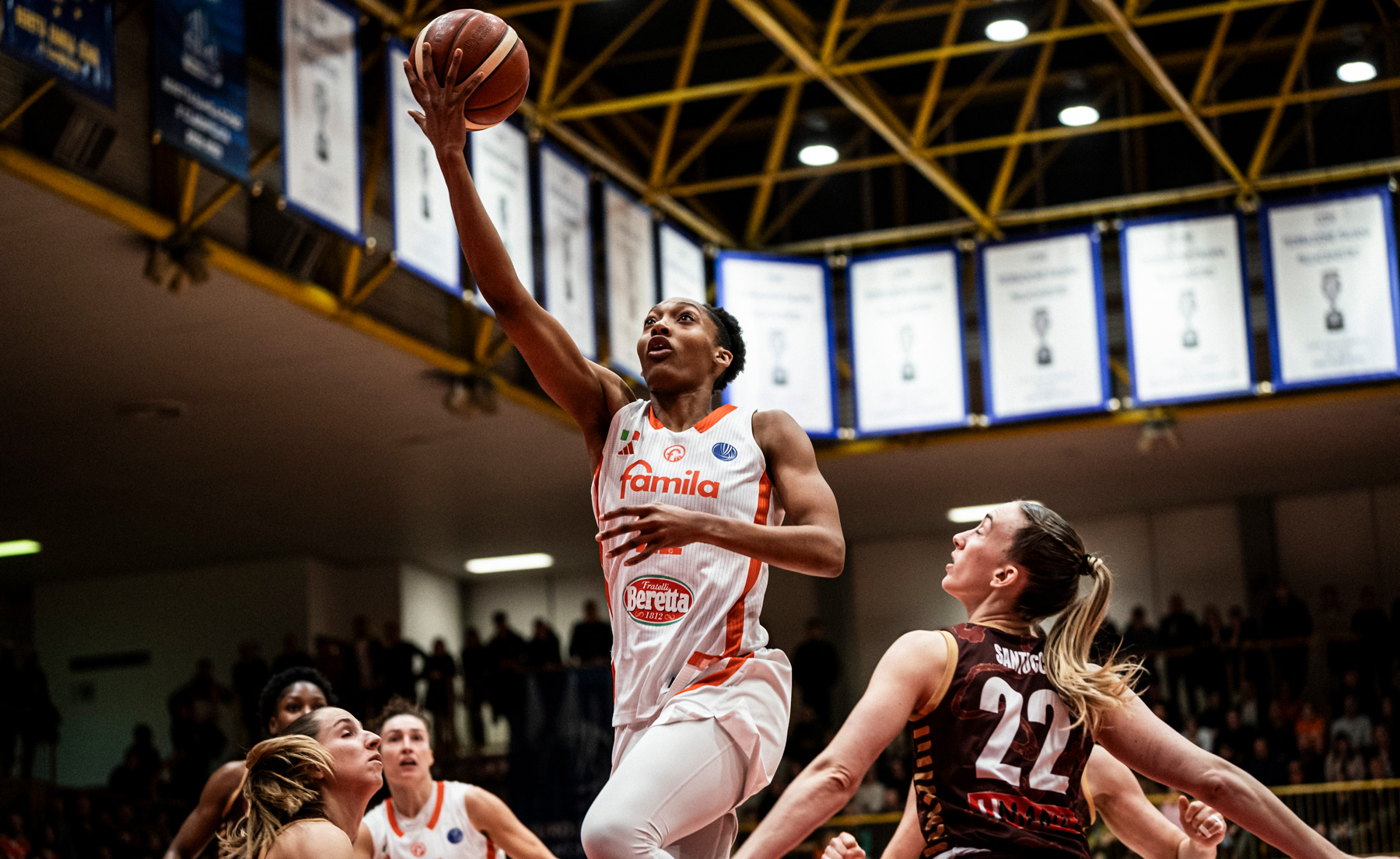 Beretta Famila Schio: Mestdagh ne, Sottana 6, Zanardi 2, Verona 11, Conde 2, Andrè 9, Zandalasini 13, Badiane 2, Keys 1, Shepard 19, Laksa 7.