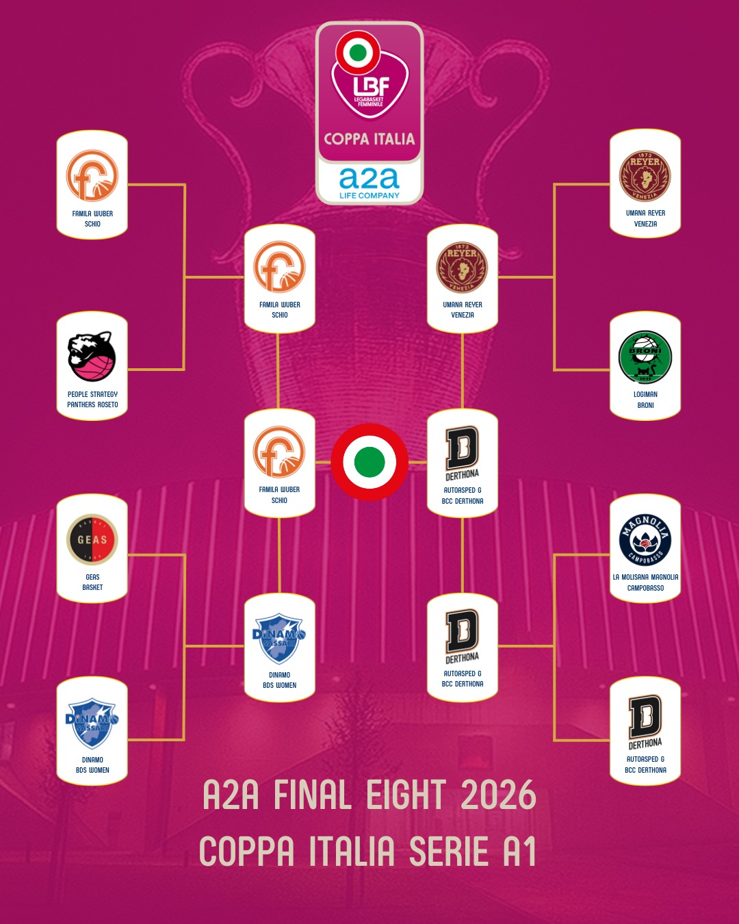A Tortona la sorpresa Derthoona centra una nuova partitona, ma il Famila Wuber Schio si conferma ancora una volta imbattibile in Coppa Italia. La Final Eight con in palio il secondo trofeo nazionale della stagione 2025/2026 se lo aggiudica ancora una volta – è la 17esima – il club altovicentino, mettendo il sesto anello al dito consecutivo. Punteggio finale di 79-72 contro le piemontesi, capaci di tenere a bada (prima metà gara super) e rispondere colpo su colpo ai canestri di Zandalasini e compagne, facendo sudare a lungo le campionesse in carica e detentrici del titolo italiano, che la spuntano grazie alla maggiore esperienza, alla panchina più farcita – nonostante il forfait della spagnola Conde – e a alla stella azzurra della nazionale “Ceci” Mvp indiscutibile della finalissima.