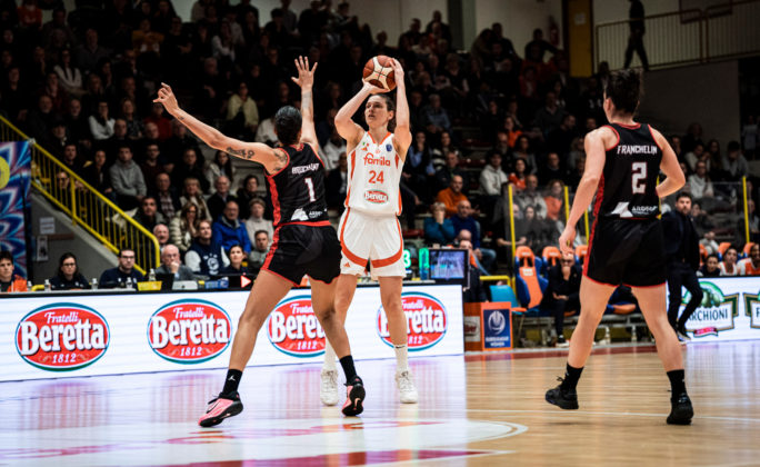 Tornando alla serata magnifica del PalaRomare, spicca l’americana con passaporto sloveno Shepard, vera dominatrice sottocanestro con 22 punti personali. A cui si aggiungono i 15 rimbalzi personali sotto i tabelloni di attacco e di difesa. A spiccare è pure il 22-5 con cui si chiudono i primi 10′ di contesa, una sberla in volto alle francesi, spente subito nelle velleità di conquistare il catino arancione del Famila, ieri sera forte della spinta di circa 1.500 tifosi. Zandalasini e Verona le altre giocatrici di casa in doppia cifra, bene la spagnola Conde a dispensare assist (ben 8).