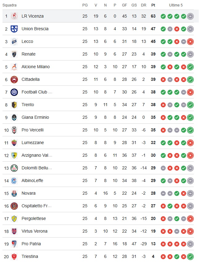 Giornata senza vittorie per le due vicentine del calcio professionistico, con l’Arzignano che incappa nella terza sconfitta dell’ultimo mese, su quattro gare, lo stesso numero di partite a cui si ferma la striscia positiva del L.R. Vicenza di Fabio Gallo dopo un poker di successi di fila e due poker di reti consecutive (4-1 al “Citta” e 4-0 alla Pro Patria). Si ferma allora a 12 perle la “collana” di vittorie casalinghe da tre punti ciascuna.