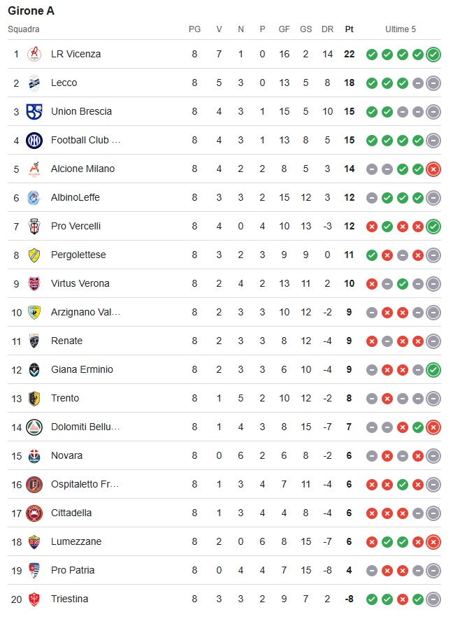 La prima in classifica vince – il L.R. Vicenza -, la seconda, la terza e la quarta pareggiano e allora eccola la domenica perfetta per i colori biancorossi, con tifosi e il club a godere per l’0-1 rifilato all‘Alcione in Lombardia per un primo “fossato” scavato tra la capolista e tutte le squadre inseguitrici: 4 punti di margine sul Lecco (ancora imbattuto come il Lane) e ben 7 sulla coppia Union Brescia-Inter Junior.
