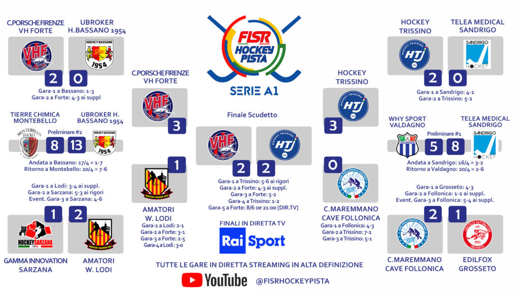 Il detto “non c’è due senza tre” se lo aggiudica insieme al titolo il Forte dei Marmi, che sabato sera in Versilia ha sancito il terzo sigillo su tre partite nel palasport di casa, mentre non lo recita l’Hockey Trissino, che dopo i due scudetti di fila manca il tris, al termine di una serie tricolore formidabile per lo show offerto ai migliaia di appassionati dell’hockey su pista italiano.