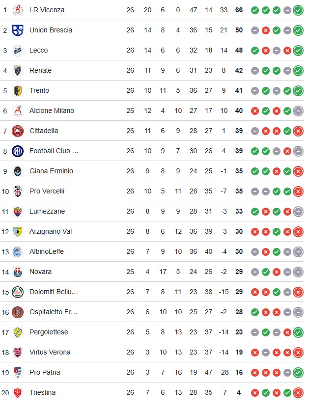 Un ritrovato Rauti in avanti, e un riconfermato protagonista Gagno in retrovia da n°1, in coppia rilanciano il L.R. Vicenza leader alla vittoria che avvicina ulteriormente i biancorossi di Gallo e il loro popolo alla promozione in serie B. Vincono le inseguitrici Union Brescia e Lecco, stavolta, ma i 90 minuti ora in meno da giocare e i soli 36 punti residui ancora in palio abbinati al +16 sulla seconda, in sostanza confermano il countdown verso la festa. C’è e si vede la volontà di continuare a ritoccare il record di partite celebrate senza sconfitte in questo formidabile campionato di serie C.