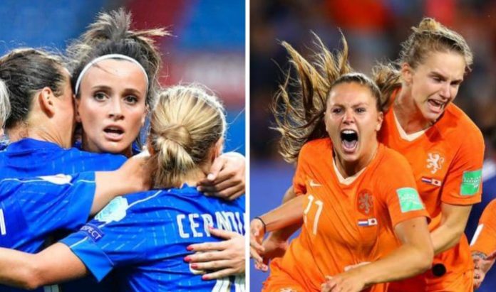 Resta comunque l’ottimo Mondiale disputato dalla nostra Nazionale formata da calciatrici non professioniste. Il match. Nonostante il grande caldo francese, l’Olanda parte a razzo: palleggio e gioco sulle ali sono il piatto forte delle ragazze olandesi, ma le italiane riescono a contenere bene l’onda d’urto creando la prima, vera occasione della gara con la Bergamaschi al 18′.