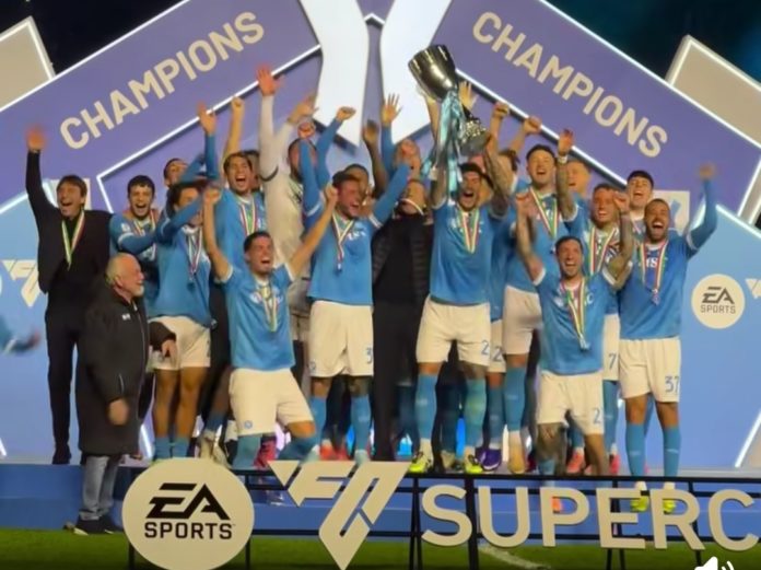 Doppio Neres devasta il Bologna: dominio Napoli, la Supercoppa italiana va alla squadra guidata da Antonio Conte. L’attaccante brasiliano mette la firma su una finale a senso unico con una splendida doppietta: un gol per tempo, meraviglioso il primo. In tal modo, il club partenopeo conquista questo trofeo per la terza volta nella sua storia. Niente da fare per la compagine di Vincenzo Italiano.