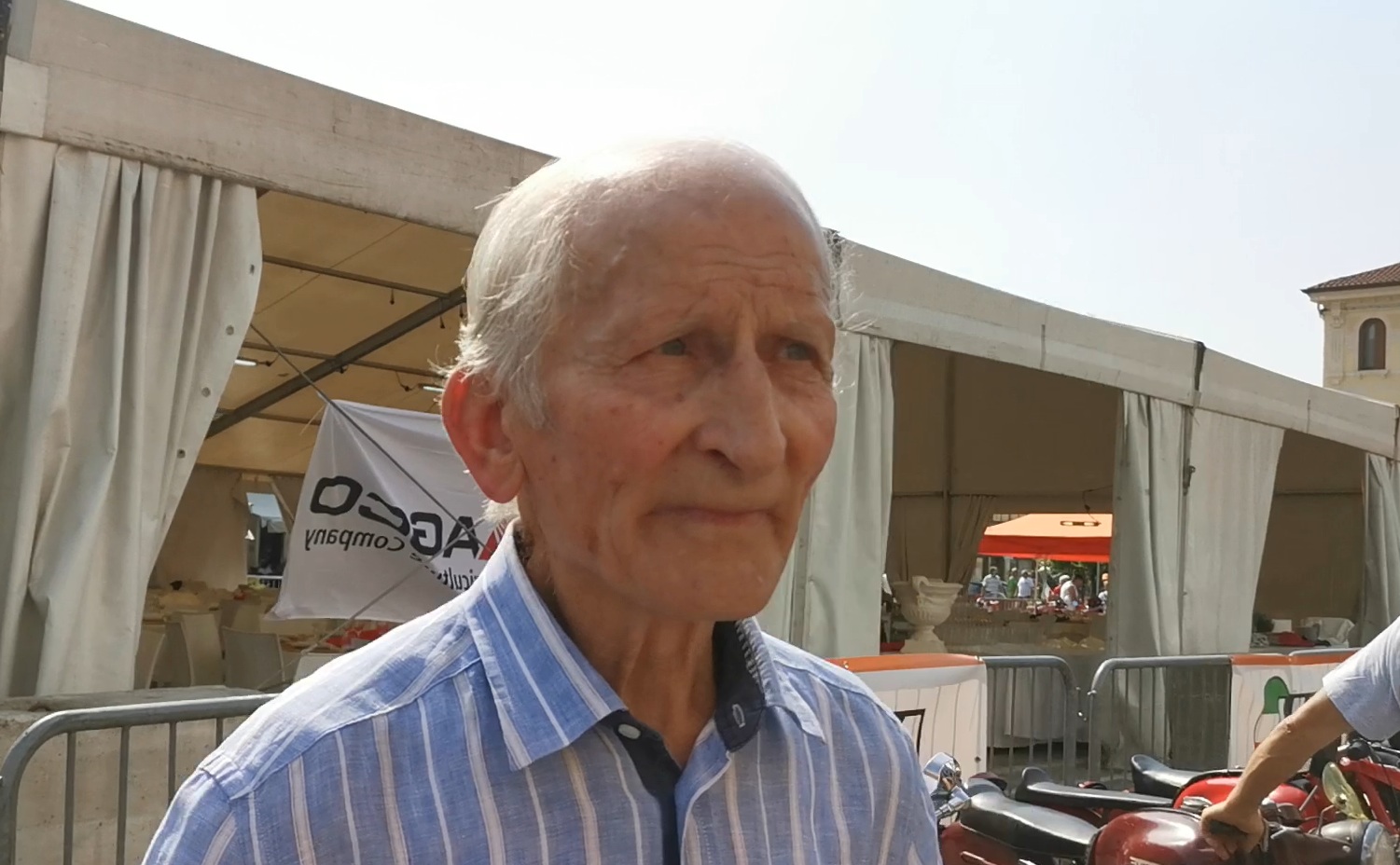 Giuseppe Mambrelli in piazza a Breganze nel 2019, per i 70esimo anniversario della fondazione dell Moto Laverda
